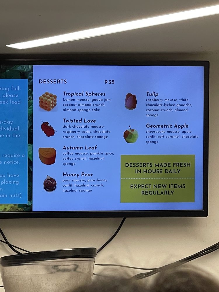 Jonquils Cafe & Bakery on Newbury St in Boston offers a unique experience for those looking for exquisite desserts and artisanal coffee. The café embraces a modern, artsy ambiance, perfect for enjoying their stunning geometric mousse cakes and intricate pastries. Customers rave about the Apple Dessert, geometric apple, and rose desserts, praising the delicate layers and creative designs. While slightly on the pricier side, the quality and artistry of the desserts make it a worthwhile treat. The coffee selection, including batch brew and specialty espresso drinks, pairs perfectly with the sweet offerings. Whether you're looking for a place to impress or simply indulge, Jonquils Cafe & Bakery promises a memorable experience for dessert connoisseurs.